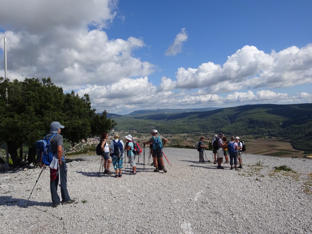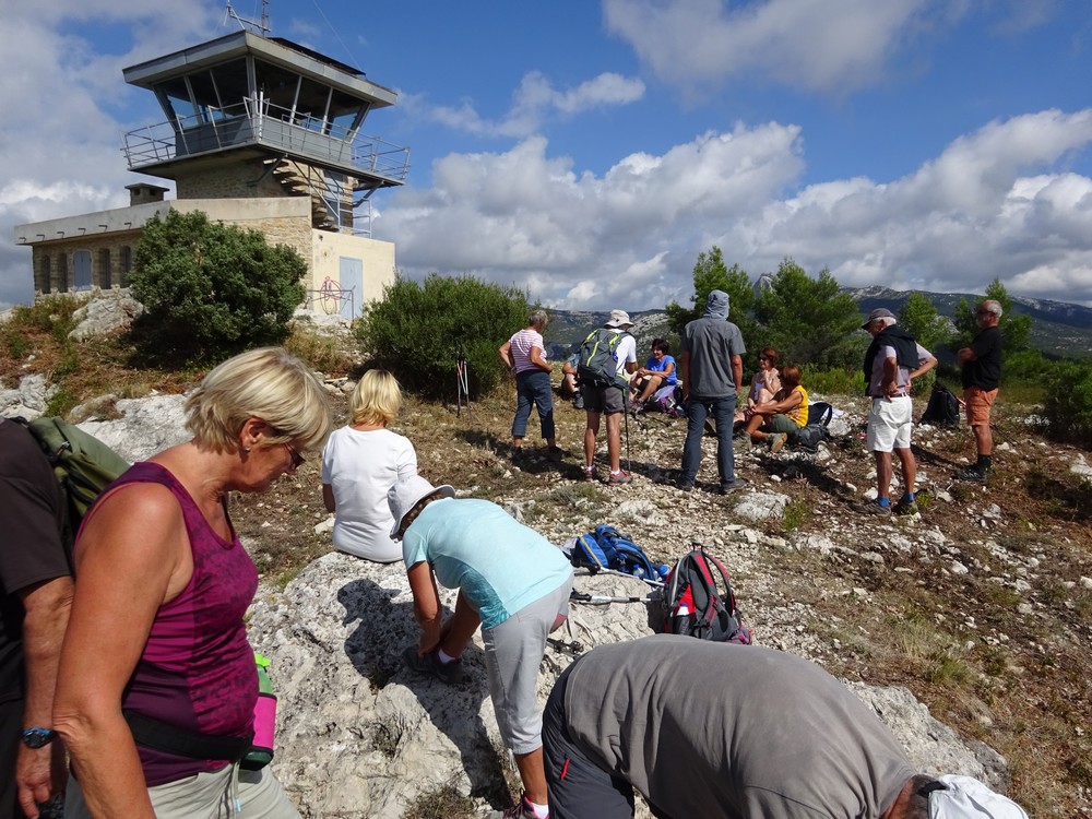 12h45, nous reprenons la randonnée. Par des sentiers agréables et assez faciles nous arrivons au sommet du PEY GROS au dessus de CUGES les PINS. C’est un départ de parapentes.