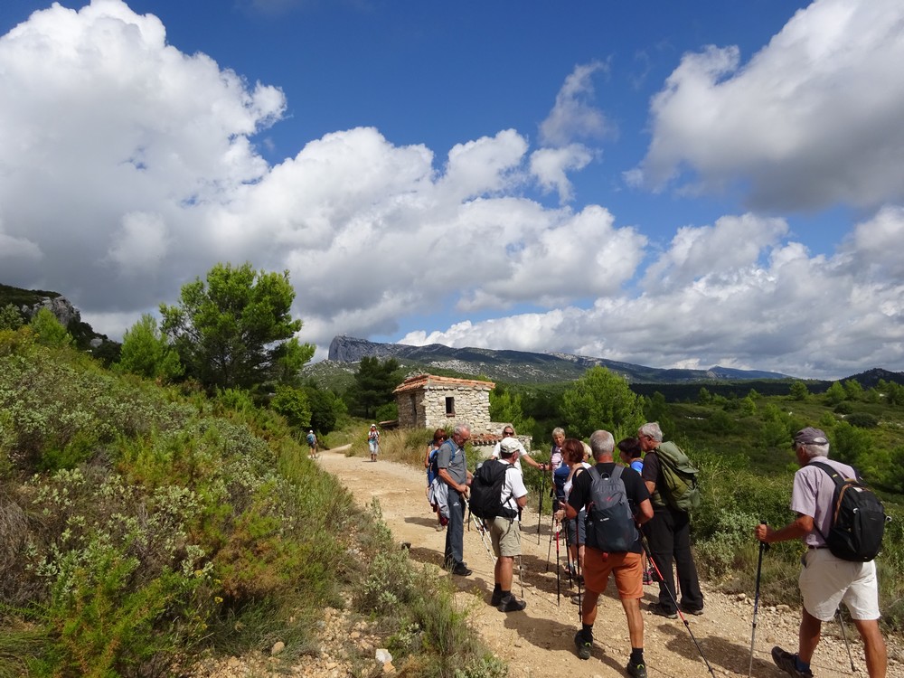 Nous sommes sur les contreforts de la SAINTE BAUME avec, à gauche, les crêtes des falaises de la Galère que nous avons parcourues l’an dernier. Au sommet le radome est dans les nuages.