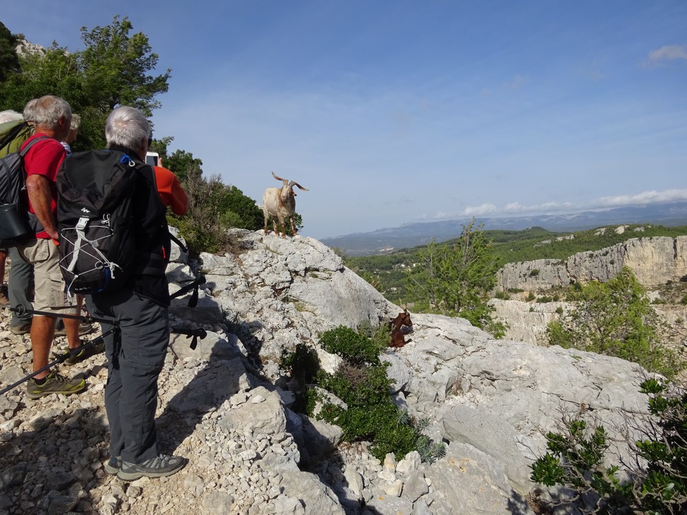 Nous reprenons notre montée, au dessous le magnifique site des grès d’EVENOS, au loin les falaises du CIMAÏ et le plateau du SIOU BLANC.
