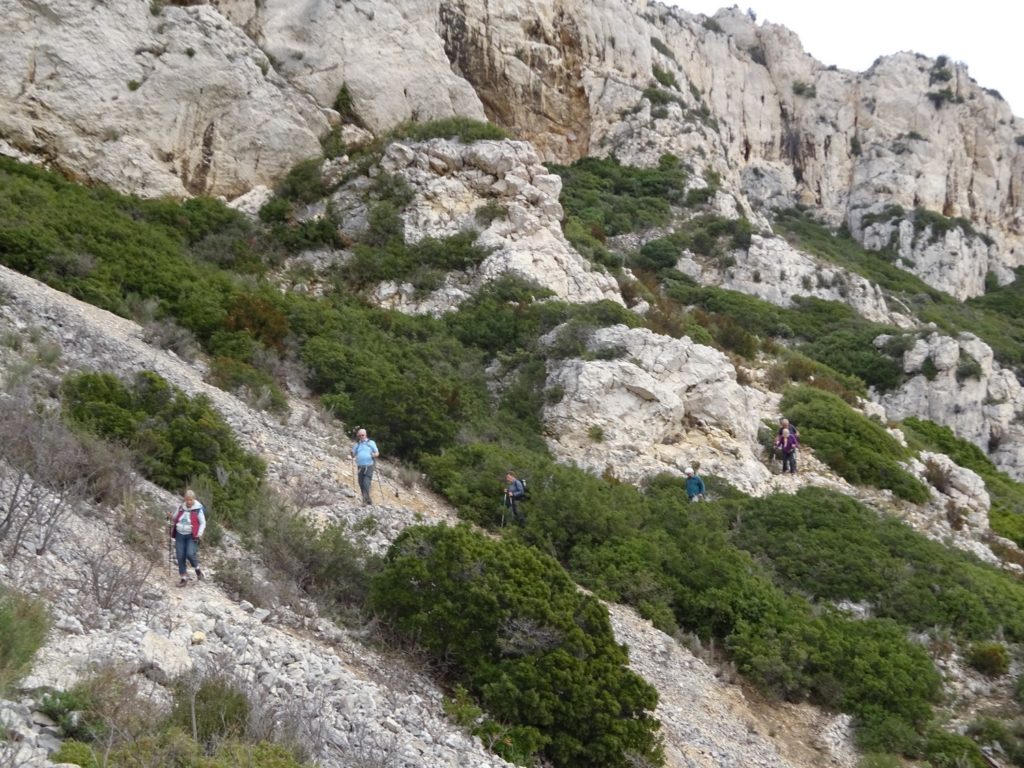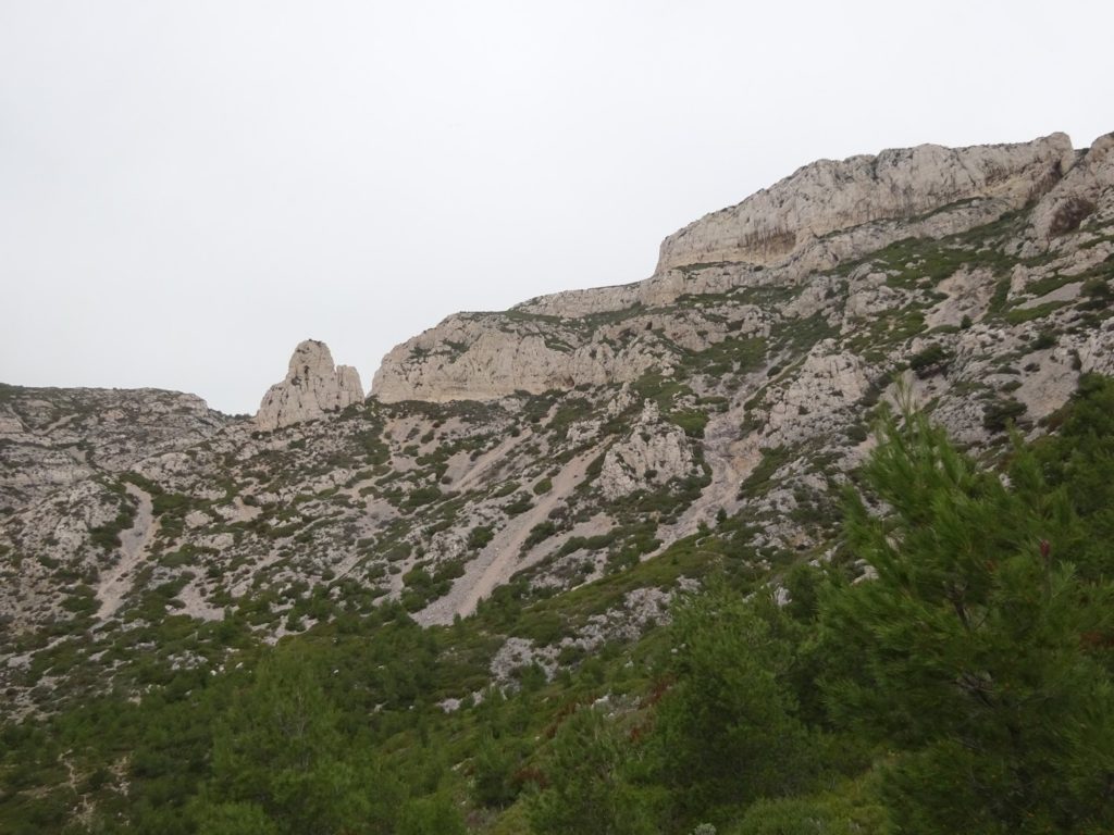Vue sur le BAOU ROND et l’aiguille de SORMIOU où nous passerons au retour cet après midi.
