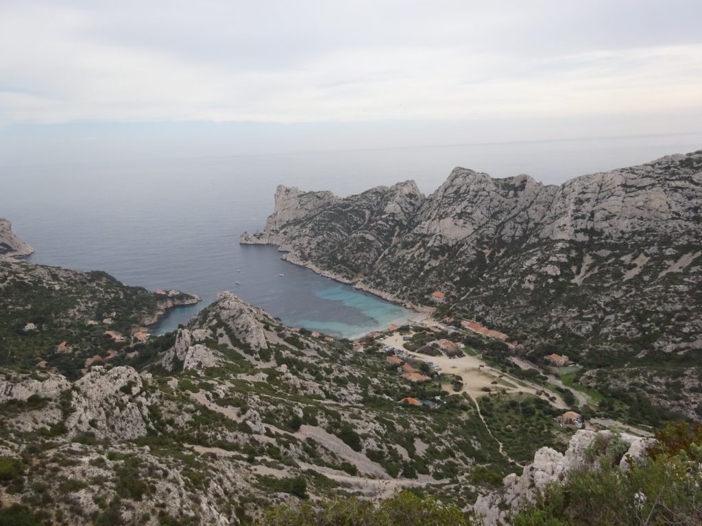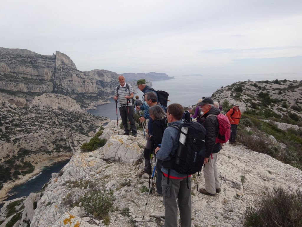 Il y a un mois nous avions fait la reconnaissance de cette randonnée et surtout trouvé la grotte de l’OS (voir C.R précédent). Départ du parking des BAUMETTES, tracé balisé bleu en direction de la calanque de SORMIOU. Beau temps doux légèrement brumeux. Après un kilomètre on aperçoit la calanque.