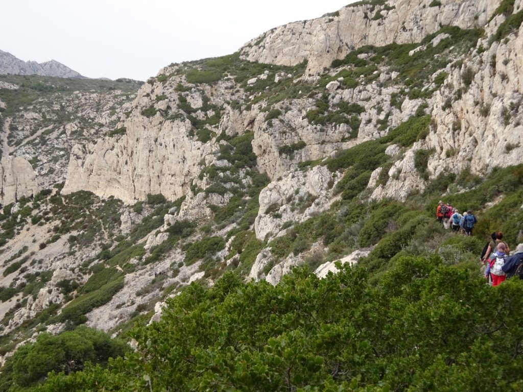 Peu de monde a la calanque nous continuons notre rando pour grimper vers les crêtes.