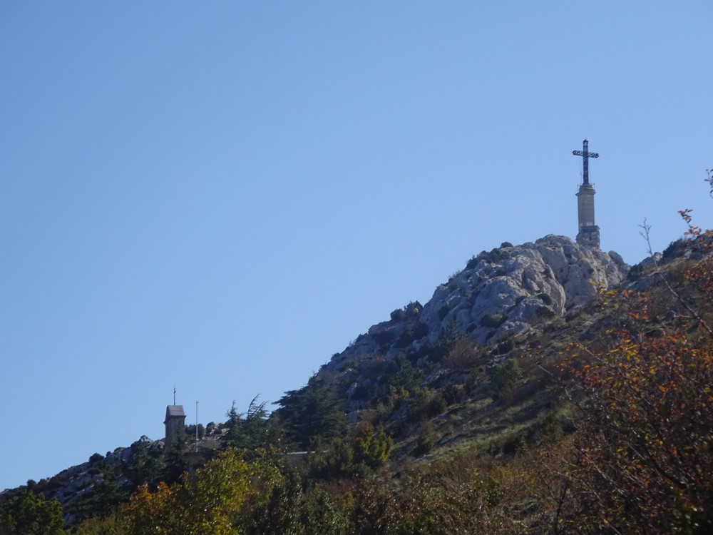 Il faut continuer à grimper sur un sentier escarpé, on aperçoit le prieuré et la croix qui parait tout prêt mais non encore 1h avec les pauses nécessaires.