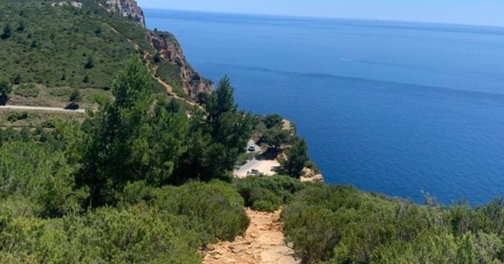 Arrivée sur la route des crêtes non loin du BAOU de la SAOUPE, puis courte partie des crêtes avec vue splendide sur CASSIS et les calanques.